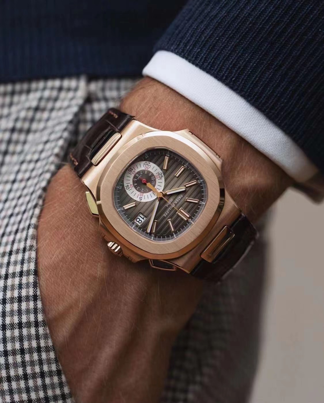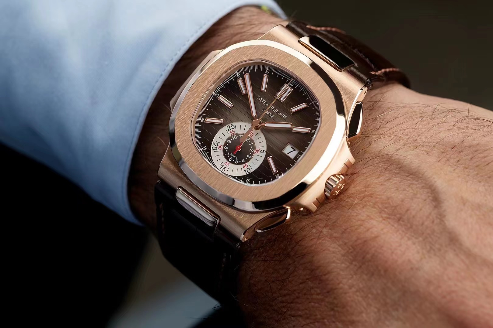 百达翡丽运动优雅系列5980R-001腕表(鹦鹉螺) 品牌:百达翡丽 系列:运动优雅(鹦鹉螺) 型号:PP5980R-001 款式:自动机械,40.5毫米,男士 材质:18k玫瑰金 功能:日期显示、计时 上市:2010年 表壳厚度:12.2毫米 表盘颜色:黑褐色 表盘形状:其他 表带颜色:深褐色 表扣类型:折叠扣 表底:背透 防水深度:120米 时标类型:棒状时标 表盘材质:黑褐色表盘,覆荧光涂层金质立体时标 表圈材质:18k玫瑰金 表镜材质:蓝宝石水晶玻璃 表冠材质:18K玫瑰金 详情请咨询官方电话: 15679987654 (长按复制) 详情请咨询官方微信: 15679987654 (长按复制) |