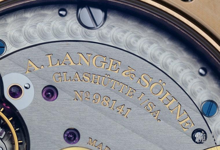 很多人都喜欢朗格采用的蓝钢实心表针的设计。金针和蓝钢针对比也非常明显,易于辨识。表盘的表面处理也是完美的,两个小表盘和主表盘之间的小反差让人很喜欢。 你会注意到,为了保持平衡,表盘中间左右文字是AUTOMATIC 和 DUAL TIME,不知你注意到了吗?包括空格在内,两边字母数字相同,这就能保持表盘平衡之美!