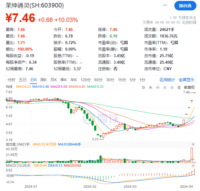 4月8日上午,采纳股份开盘即走出20CM跌停,股价来到21.19元/股。截至发稿,采纳股份短暂撬开跌停,但仍挣扎在跌停线附近。