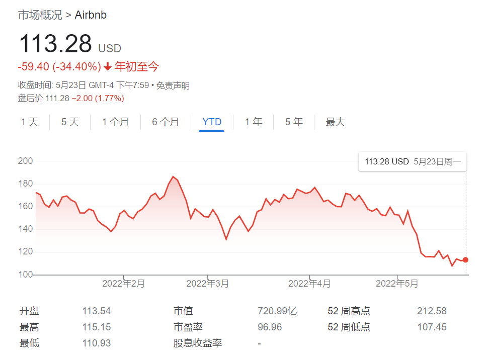公告截图 法新社在相关报道中提到,爱彼迎预计,随着对新冠疫情控制措施的放松和边境重新开放,在新冠疫情前一直蓬勃发展的中国出境游将出现反弹。 爱彼迎在最近的一份财报表示,今年第一季度,公司的预订量创下新高,这表明因新冠疫情流行而受到抑制的旅游需求正重新释放。 该公司表示,尽管奥密克戎毒株感染人数持续上升,但今年前三个月,爱彼迎的住宿和旅游预订量超过1.02亿,创下新的季度纪录。 “预订旅行的客人数量比以往任何时候都多,”爱彼迎在一封信中告诉股东, “展望未来,我们看到此前被压抑的需求持续强劲。” 境内业务规模较小,中国大陆业务仅占总营收的1% 爱彼迎在2016年正式启动其中国大陆业务,不过从数据上来看,业绩并不理想。 根据市场研究公司AirDNA的数据,截至4月底,爱彼迎在中国的活跃房源有50多万套,而全球活跃房源则超过600万套。昆士兰大学去年的一份报道显示,2020年,爱彼迎在中国有15万套房源可供住宿,而同行业的途家有约120万套房源。 虽然爱彼迎致力于在中国打造品牌,还由其联合创始人Nathan Blecharczyk亲自掌舵,负责中国业务,但是在过去的几年里,来自中国国内的平台收入,仅占其总营收的1%。《华尔街日报》形容道,“这家巨头在中国的旅游行业中,是一个小角色。” 作为“民俗鼻祖”,爱彼迎可谓集各种光环于一身:2020年在美国上市,首秀股价即翻番,估值超过1000亿美元,一度创下当年首次公开发行(IPO)之最。路透社当年评论道,“这为投资者涌向科技股的丰收年划上句号。”但是伴随着疫情的起起伏伏,其业务也受到了不少的影响,股价起起落落。 年初至今,其股价已经下跌超过30%。虽然现在股价仍高于它当初68美元的IPO定价,但是新冠疫情的蔓延,检疫、防疫一些措施的持续存在,正让其经营活动面临着不小的考验。爱彼迎表示,今年一季度中国疫情的反复,也让其对应的业务有所放缓。